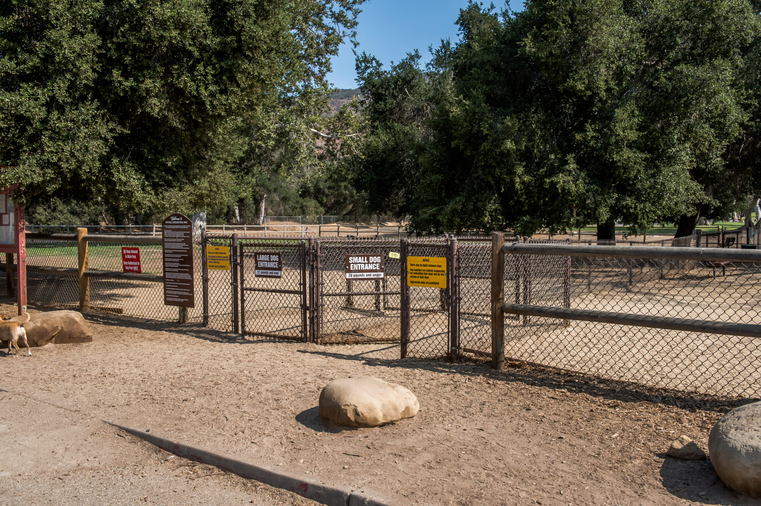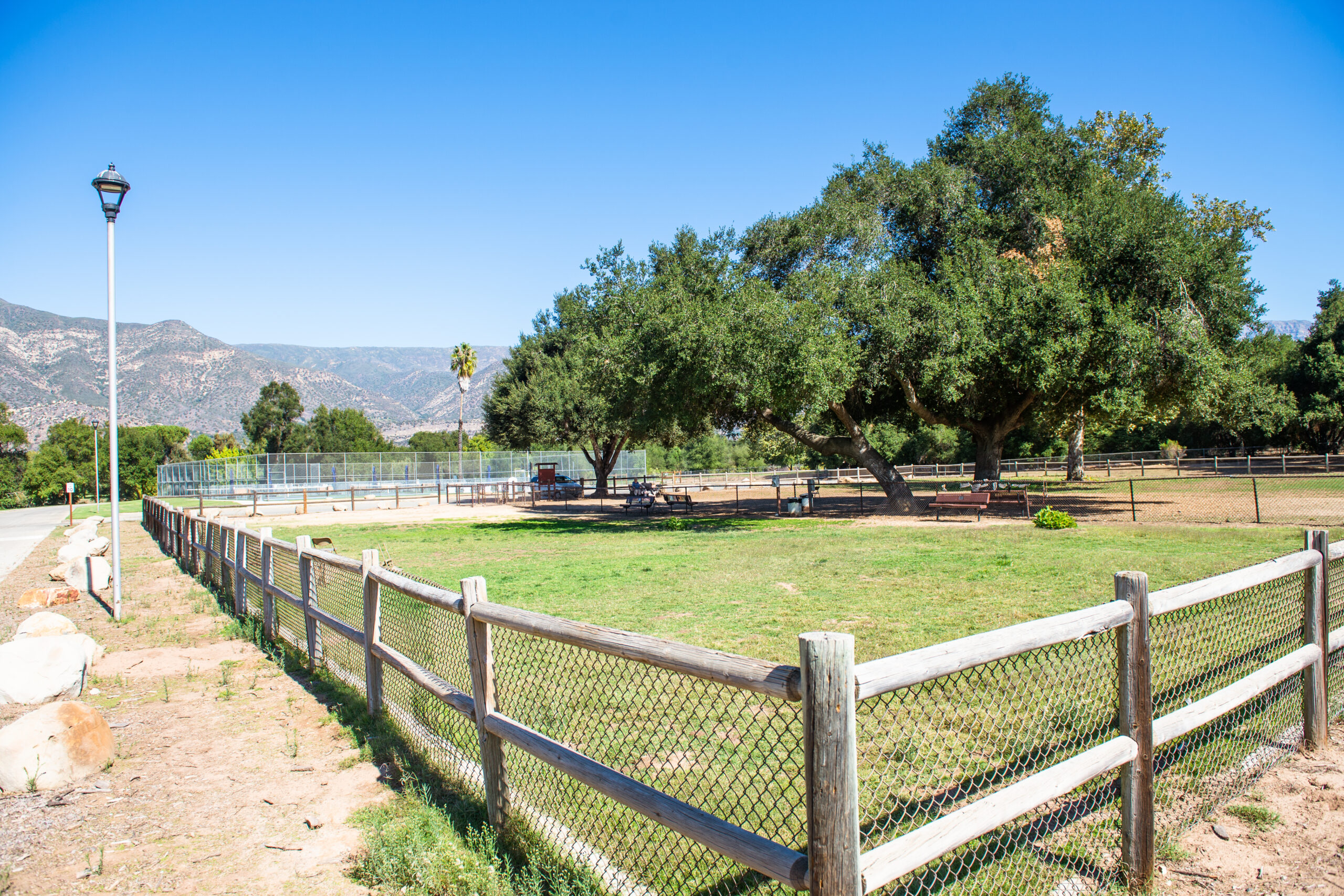 The Mitchell Edelson Dog Park is situated on 1 acre of land within Soule Park that offers separate fenced areas for large and small dogs. The park is located in the heart of the Ojai Valley right next to the Soule Park Golf Course. Parking fees are required to access this park. Daily rates and annual parking passes are available for purchase.